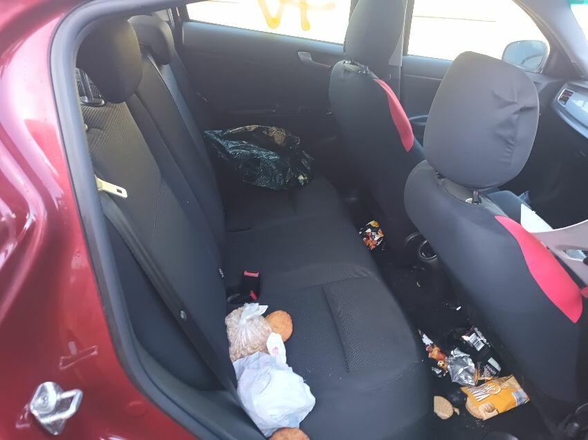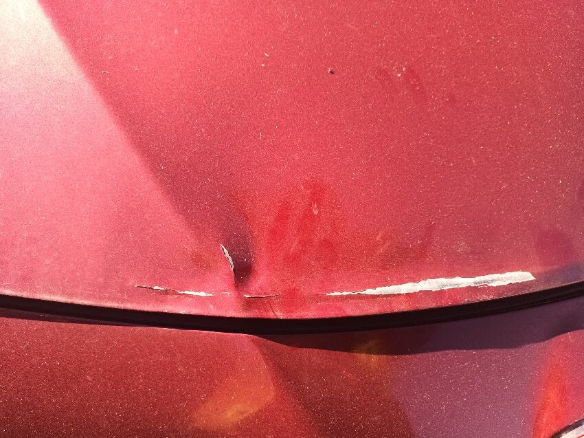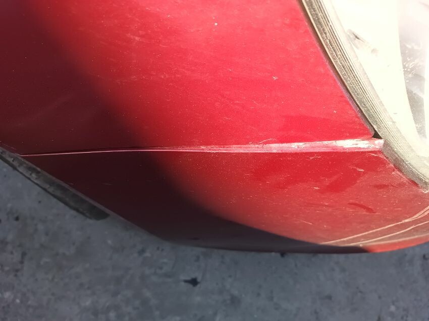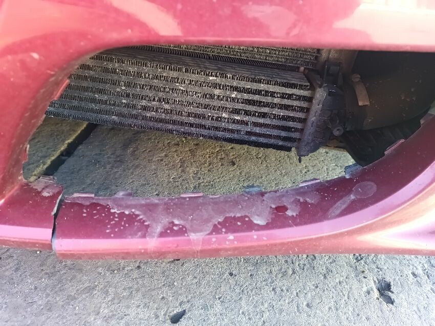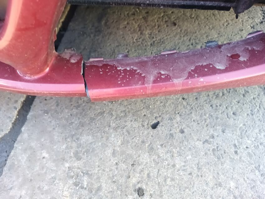 Bonnet damaged, bumper cracked & loose, left side grill missing, brake fault light is on, fuel light is on, moldy food in the back, exhaust leaking a bit, general wear & tear.