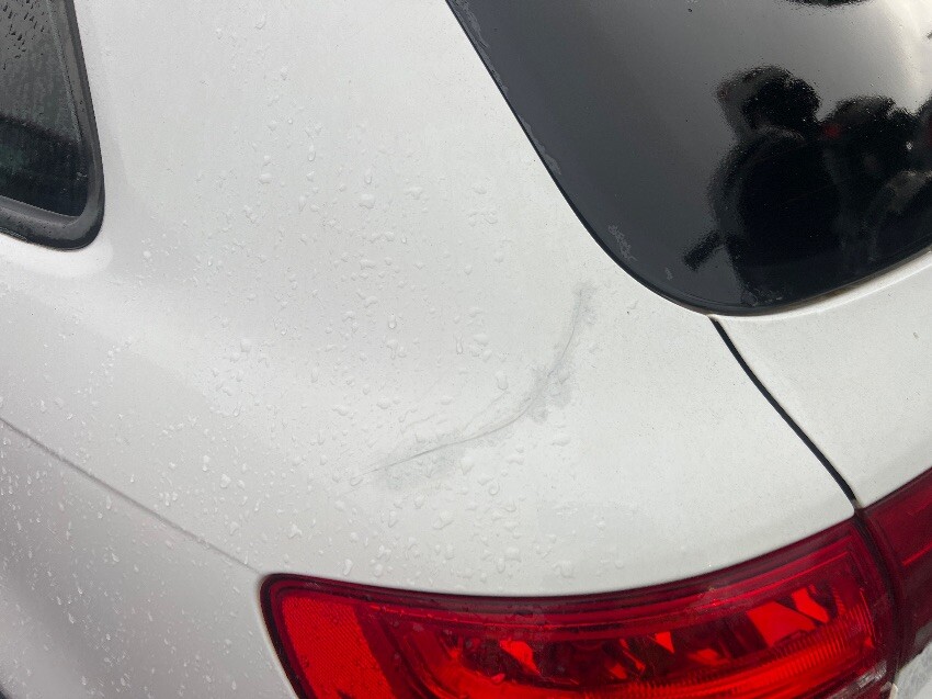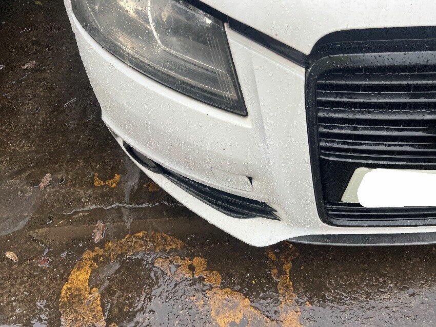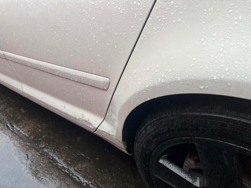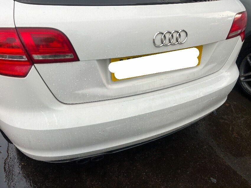Front bumper, offside wing mirror, offside front passenger door, nearside rear passenger door, nearside rear wheel arch, rear bumper, boot, arm rest, drive shaft hanging off.