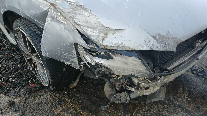 Front bumper missing, both front headlight units, bonnet, bonnet jammed ns front wing, ns wing mirror, ns rear quarter, rear bumper, os complete, scuffs and scratches all over, general wear and tear for age, possible suspension and steering assembly damage to os front, possible engine damage