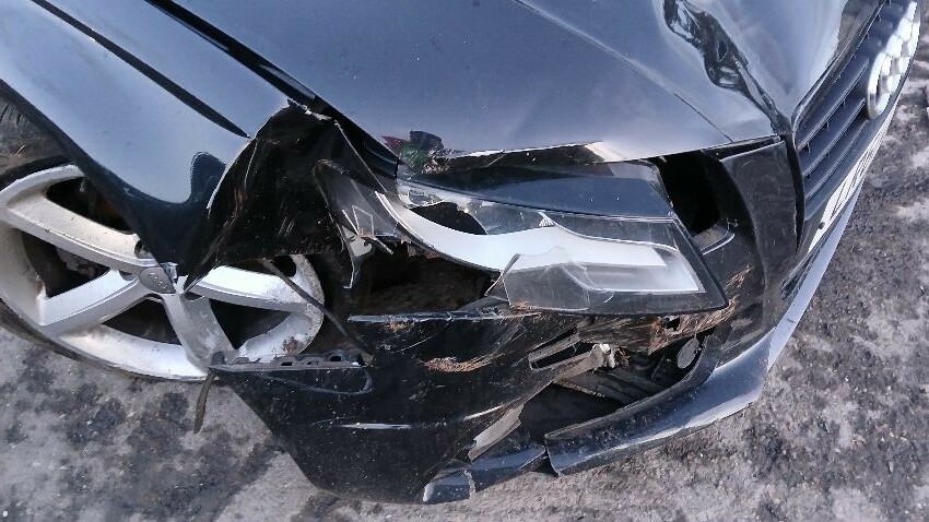 Front bumper, bonnet, o/s front headlight unit, n/s front wing, n/s wing mirror, n/s rear quarter, rear bumper, boot lid, o/s front door, o/s front wing, scuffs and scratches all over, general wear and tear for age, possible suspension and steering assembly damage to both sides at front