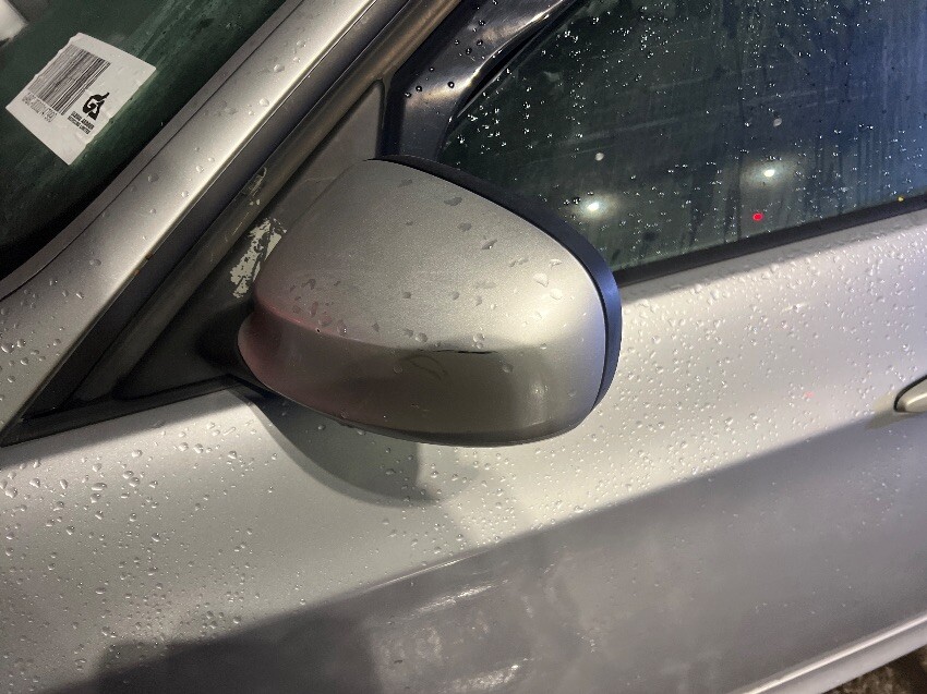 Front bumper, nearside front wing, nearside wing mirror, rear bumper,
