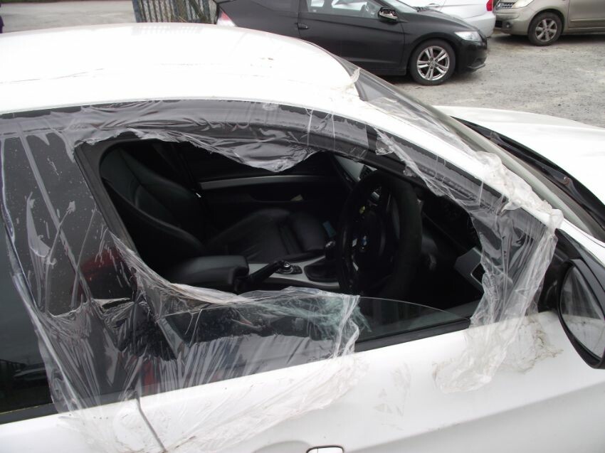 Damage to: front bumper, rear bumper (minor), o/s/front door glass smashed, & some rust showing. after-market air filter. no keys. locked.