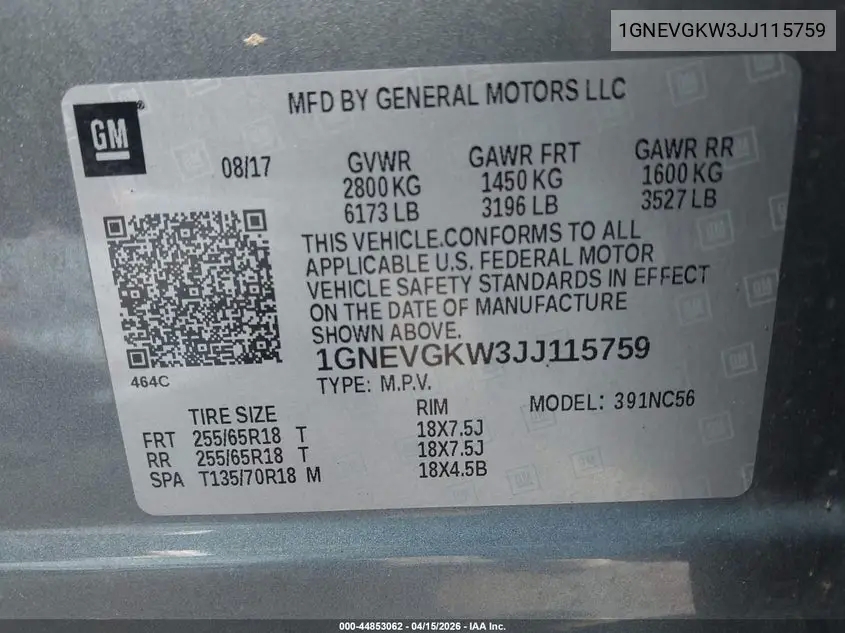 Car kit CHEVROLET TRAVERSEII 2018