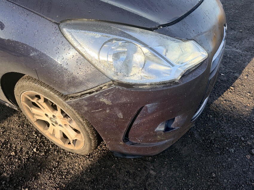 Front bumper hanging off o/s, popped off clip n/s. n/s wing mirror cover missing. scuffs on rear bumper. general wear and tear.