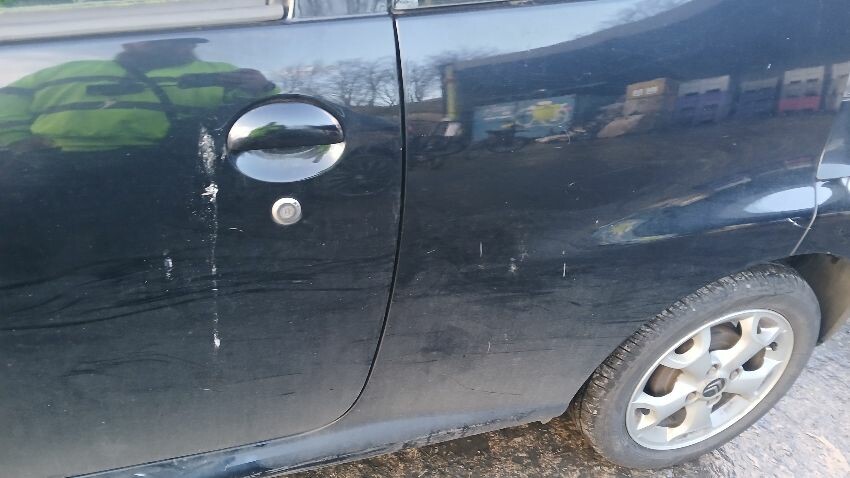 Front bumper, bonnet, n/s sill, n/s door, n/s rear quarter, rear bumper, o/s rear quarter, o/s door, o/s wing mirror, scuffs and scratches all over, general wear and tear for age and mileage