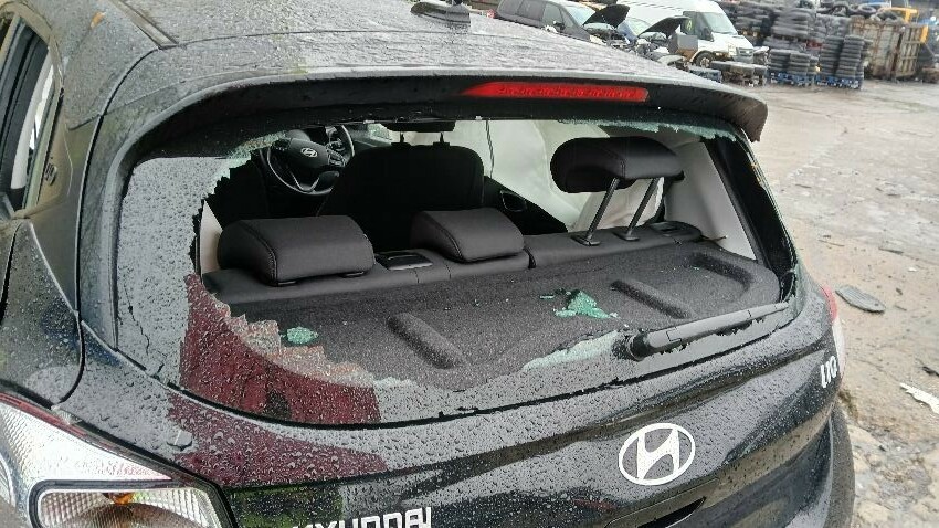 Front bumper, both front headlight units, front windscreen cracked, roof, n/s complete, rear bumper, boot lid, rear windscreen smashed, o/s complete, possible suspension and steering assembly damage to both sides at front, possible suspension damage to both sides at rear, possible structural damage, areas of rust, airbags deployed