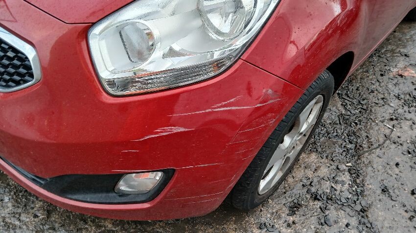Front bumper, n/s wing mirror, n/s rear door, rear bumper, o/s rear quarter, o/s wing mirror, o/s front wing, scuffs and scratches all over, general wear and tear for age