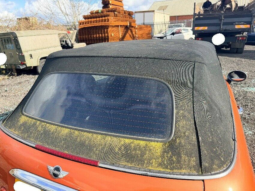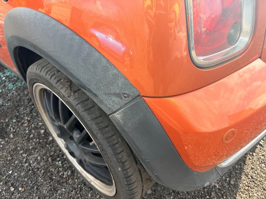 Front bumper hanging slightly. scuffs and scrapes all over. chrome roof trim pulling away from n/s rear wing. chunk taken out of n/s wheel arch trim. battery missing. driver door window left down exposing interior to the elements, damp and mouldy. stereo missing. general wear and tear.