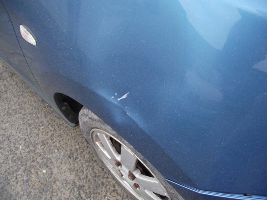 Damage to o/s/f wing, front bumper (minor), rear bumper (minor), & n/s/r tyre flat. age related wear. interior dirty & musty.