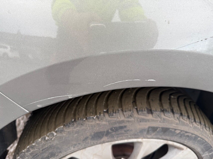 Rear bumper, o/s rear wheel arch, general wear and tear.