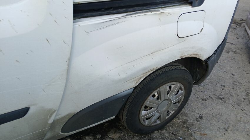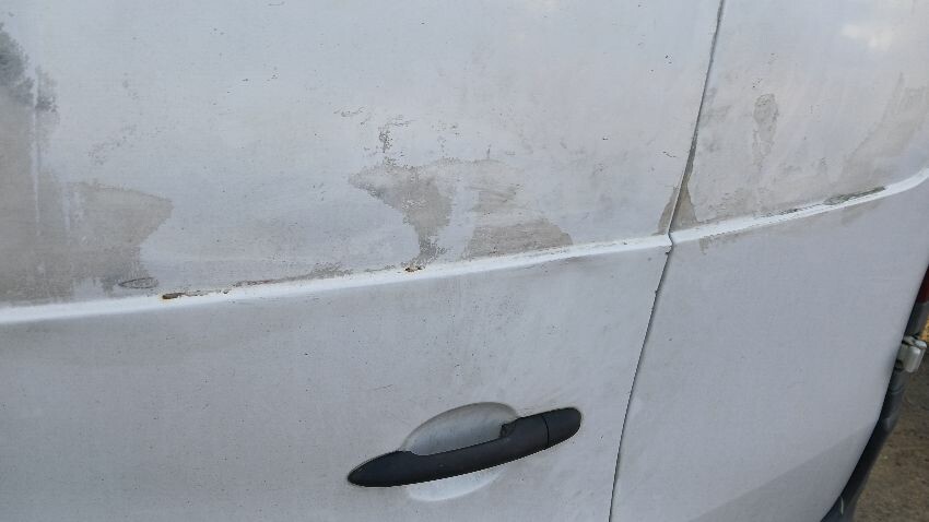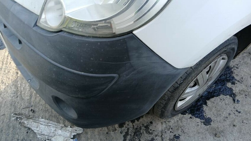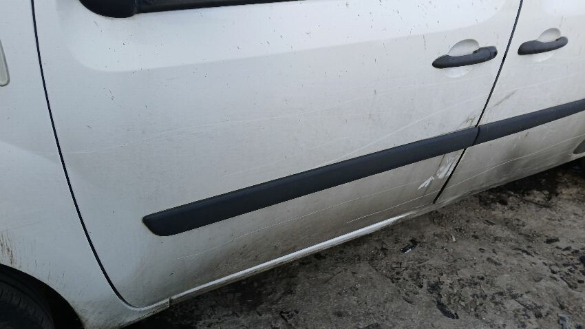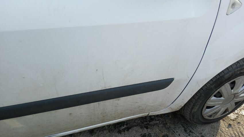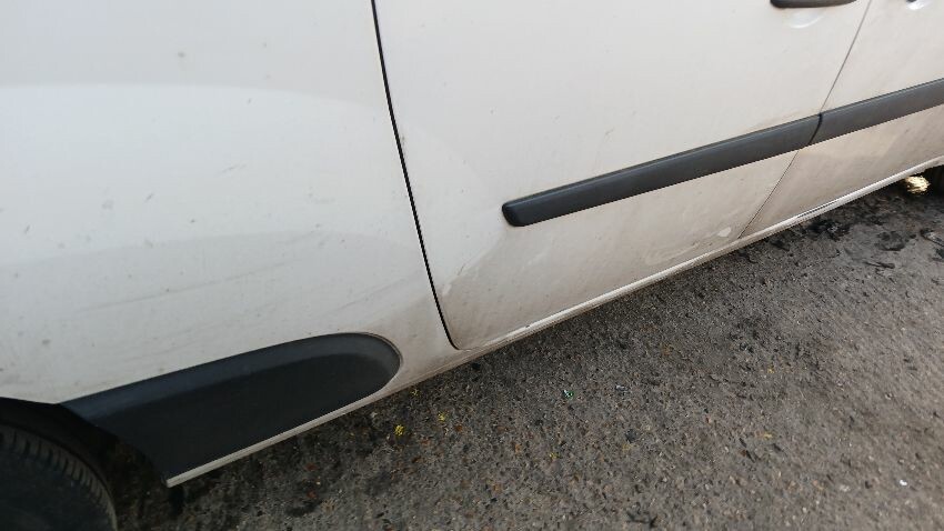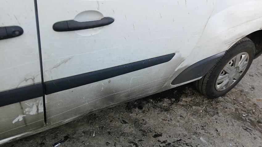 Front bumper, bonnet, n/s wing mirror, n/s sliding door, n/s rear quarter, rear bumper, both rear doors, o/s rear quarter, o/s wing mirror, scuffs and scratches all over, general wear and tear for age and mileage, interior damaged, interior parts missing, engine management light on