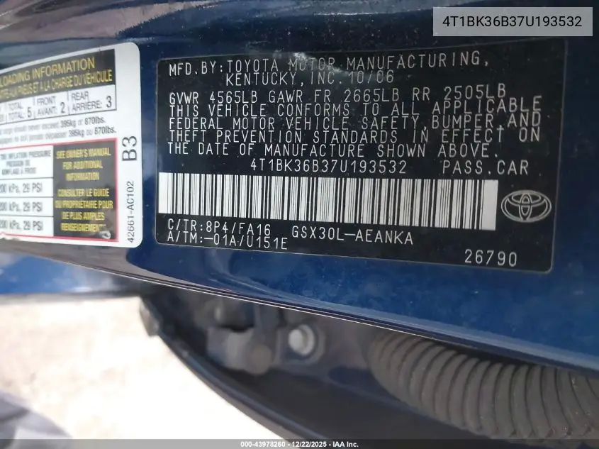 Car kit TOYOTA AVALONIII 2007