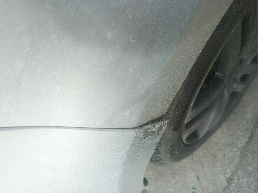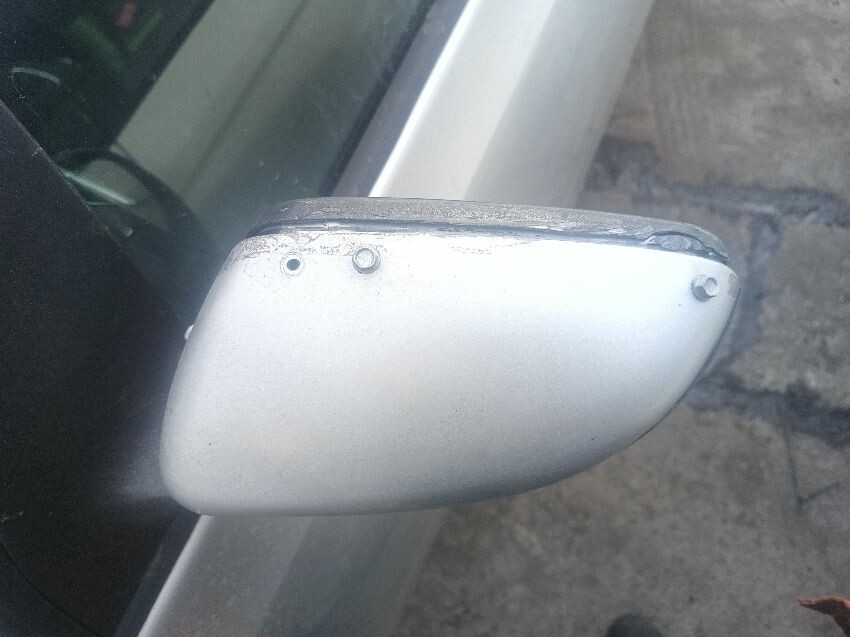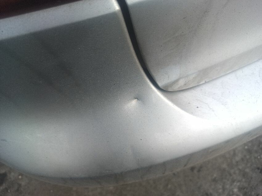 Dent in roof, loose front bumper, damaged passenger side wing mirror plastic lock trim missing off drivers side door, damage to the rear bumper, general wear and tear.