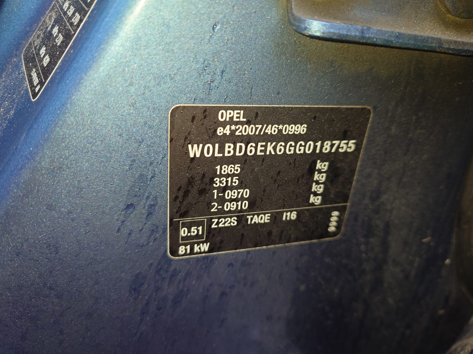 Door rear, left