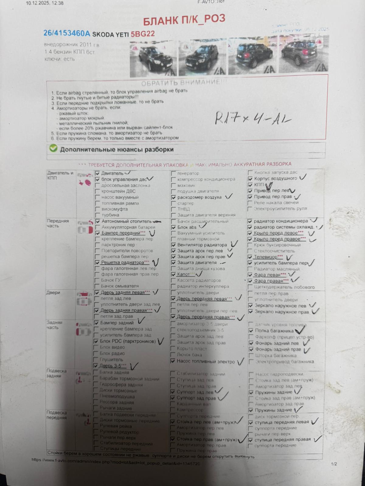 Haif kit Skoda Yeti 2011